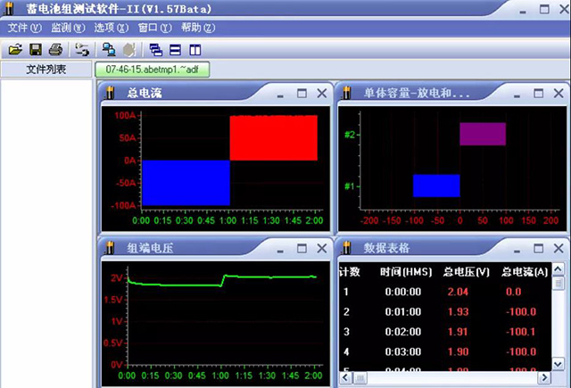 數據表(biǎo)格界面(mian):顯示放(fàng)電、充電(dian)和活化(huà)時電池(chi)的放電(diàn)參數值(zhí);