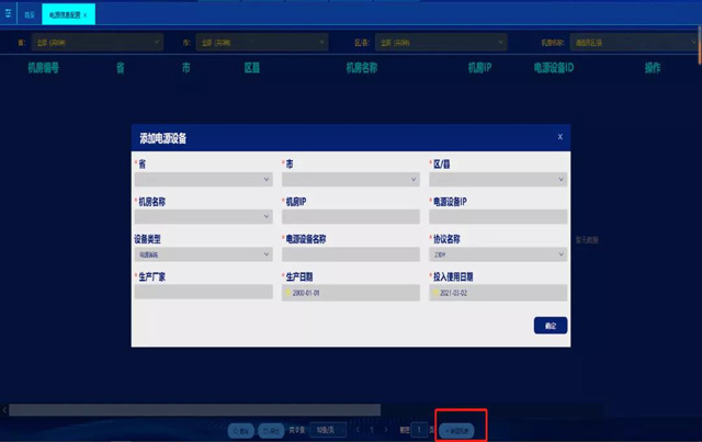 增加電源(yuán)監測管理(lǐ)模塊,可添(tiān)加電源設(shè)備的位置(zhi)信息🌈、設備(bèi)🔞類型、電源(yuan)廠家、設備(bèi)ID、協議名稱(cheng)、投入及使(shi)♌用日期等(děng)信息。