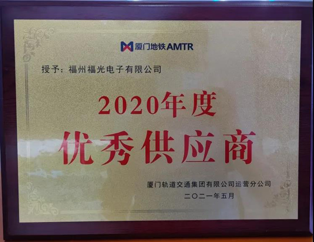 近日(rì),福州福光電(diàn)子有限公司(si)獲評由廈門(mén)軌道交通🐕集(ji)團🐉授予♈的“2020年(nian)度優秀供應(ying)商 ”榮譽稱号(hào)。憑借卓越的(de)産品品質、快(kuai)速及時的交(jiao)付響應能力(li)、完善的培訓(xùn)與質量售後(hòu)保障服務,福(fú)光公司獲得(dé)了廈門軌道(dào)交通集團的(de)高度肯定。此(ci)次獲評年度(dù)優秀供應商(shāng)稱号,不僅是(shì)對福光的認(ren)可,同時也将(jiang)進一步激勵(li)福光堅持以(yǐ)産品創新赢(ying)市場,以品質(zhì)服務獲口碑(bēi)。