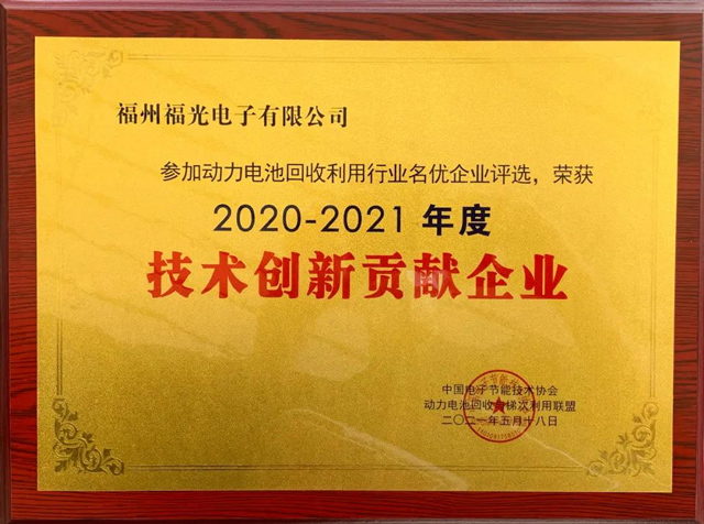 再添(tiān)榮譽 | 福光電子(zi)榮獲動力電池(chi)回收利用行業(yè)“2020-2021年度技🛀🏻術創新(xin)貢獻企業獎