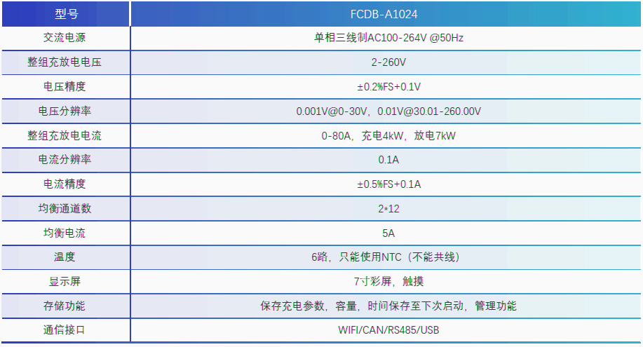 FCDB-A1024锂電充(chong)放均衡(heng)一體機(ji)集整組(zu)充放電(diàn)、電芯均(jun1)衡爲一(yi)體機,提(ti)高了對(duì)锂電池(chi)試驗測(cè)試、售後(hou)維護的(de)工作效(xiào)率。