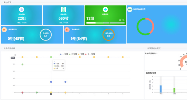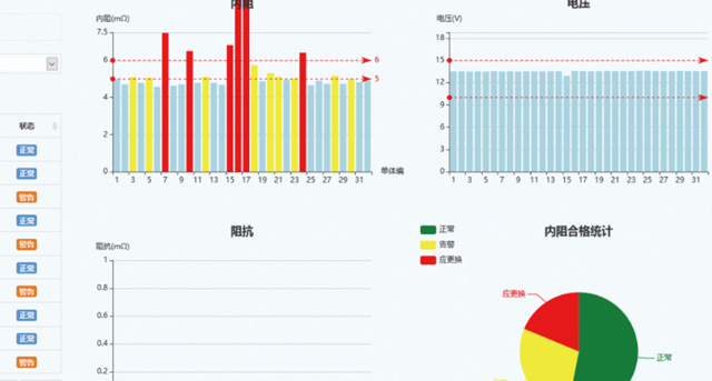 直(zhí)觀快捷(jié)顯示蓄(xu)電池組(zǔ)狀态基(ji)礎信息(xī)界面,包(bāo)括⭕:電池(chi)組數,單(dan)體總數(shu),H值,内阻(zǔ)告警,健(jiàn)康組數(shù),巡檢統(tong)💚計,電池(chí)組狀态(tài)統計。
