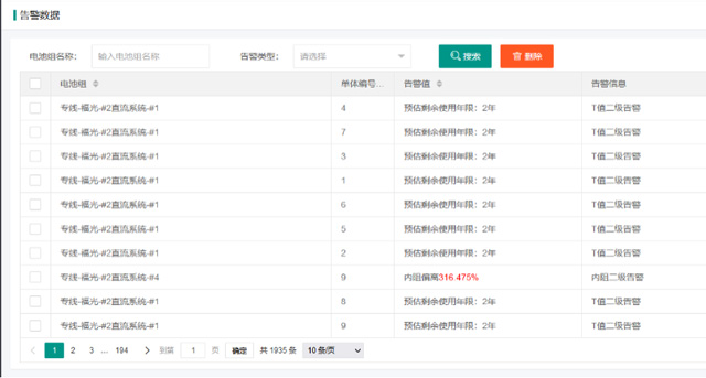 系統将(jiāng)觸發告(gào)警的信(xìn)息獨立(lì)整理到(dào)告警列(liè)表中,方(fāng)🐅便🔴使🈚用(yong)者🌈着直(zhi)接查看(kan)具體故(gu)障電池(chí)信息。