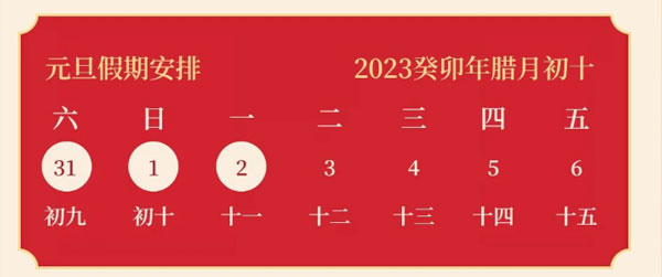 況,就2023年(nian)元旦放假安排(pai)通知如下: