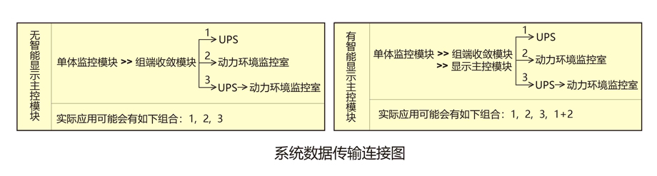 ● 系(xi)統數據傳輸方式(shì)靈活, 監控數據傳(chuan)送可滿足任何機(jī)房各種傳輸、對接(jie)需求具體方式如(ru)圖: