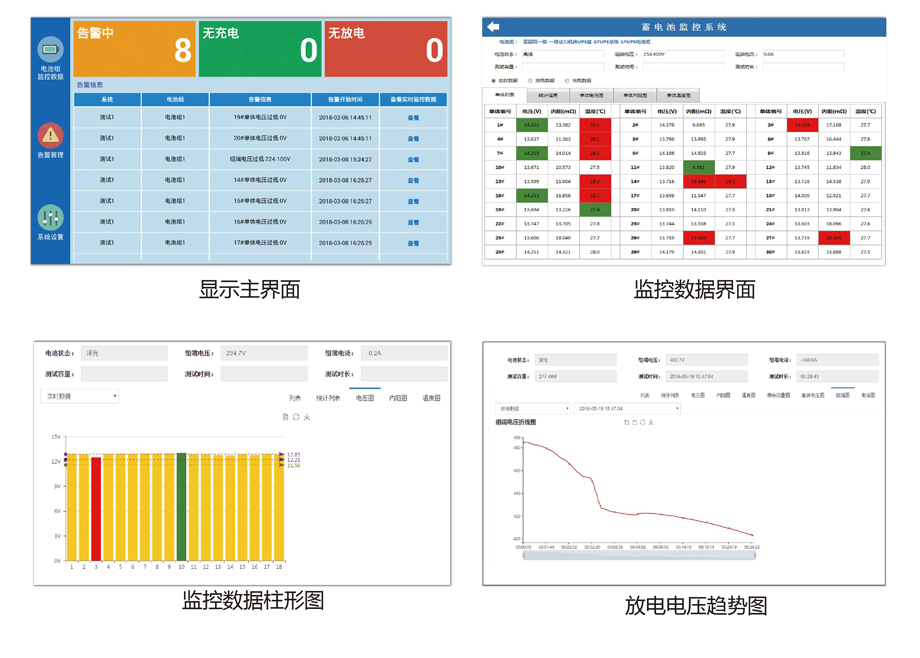 ● 放電容量測試支(zhi)持: 能自動判斷電(dian)池組開始放電,自(zì)動記錄整個放電(diàn)✉️過程和充🙇♀️電⛱️過程(chéng)。因此,用戶無需在(zài)購買充放電測試(shi)所需 的監控設備(bei),節省資金,并且大(da)大減輕維護人員(yuan)的接線工作量